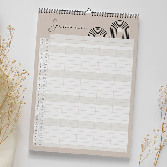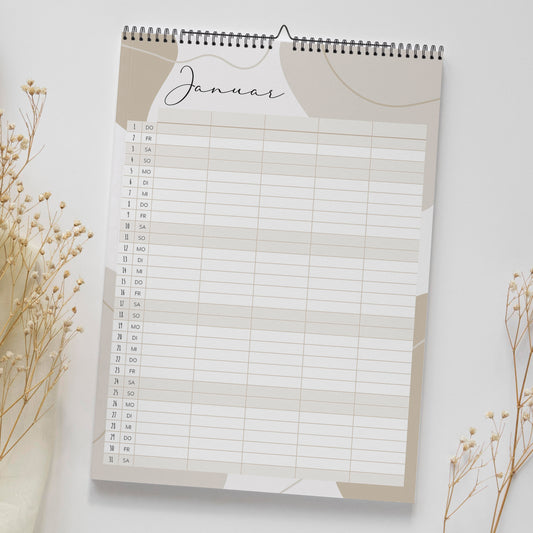 Familienkalender 2026 beige Skandi Line-Art DIN A4